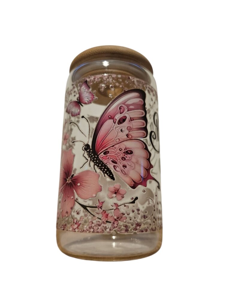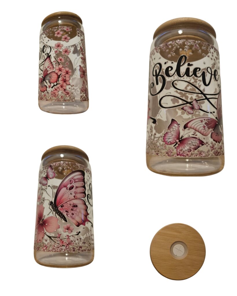 Let your dreams take flight with this inspiring can-style glass cup, featuring a delicate pink butterfly design and the empowering slogan “Believe.” A symbol of transformation, hope, and inner strength, the butterfly reminds us to trust the journey and embrace our own evolution—one sip at a time.